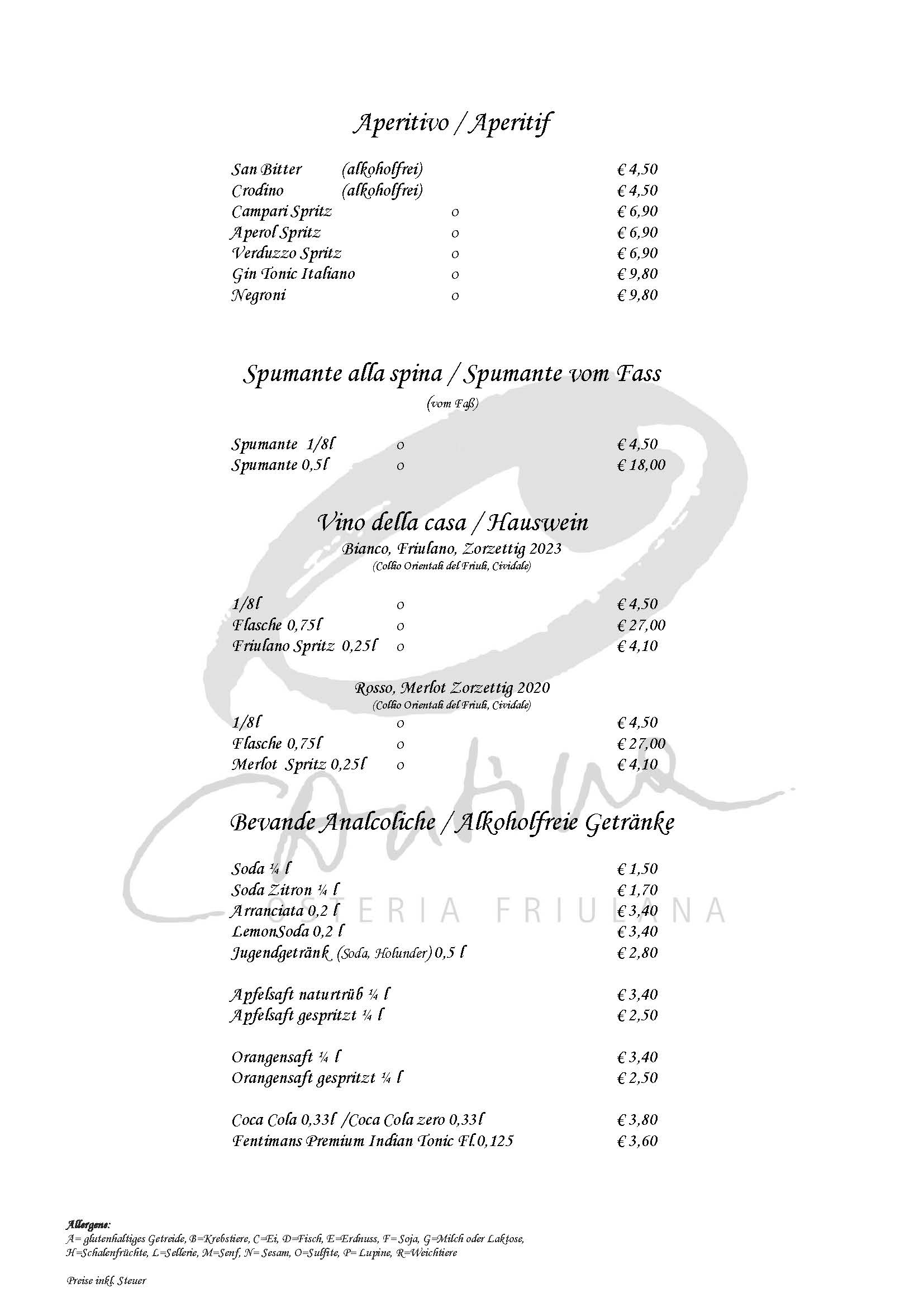 Die Besonderheit dabei ist, dass es die allermeisten Weinpositionen auch glasweise zur Verkostung gibt. Wir haben um die 30 offenen Positionen, damit Sie sich quer durch das Friaul kosten können.